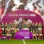 The Springboks outplayed the Barbarians by 54-7 to win the Qatar Airways Cup for a third time in as many seasons, at a wet DHL Stadium in Cape Town on Saturday. The Boks were up 19-0 at half-time in front of a 45 000 strong crowd, courtesy of three tries, and they added five more in the second half to romp away to a very convincing win. There was a touch of class from the visitors just before kick-off when…