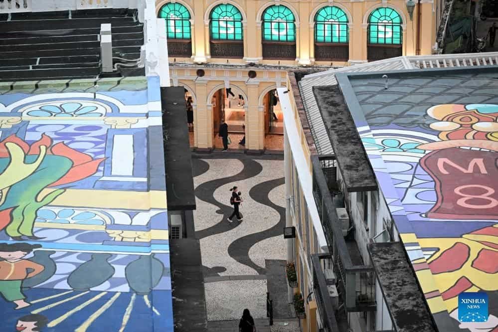 This photo taken on Nov. 15, 2024 shows street views seen from the windows of M8 in Macao, south China. Located at the heart of the historic center of Macao and just 50 meters from Senado Square, the M8, a key commercial urban redevelopment project in Macao, is expected to be open to the public at the end of November. (Xinhua/Jin Liangkuai)